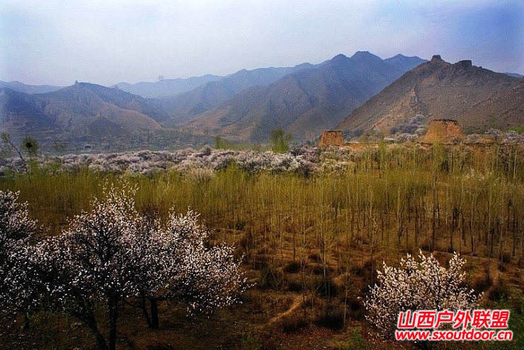 夕阳垂地,晚霞似锦,守口堡与杏花,就如同英雄美人,年复一年的寂寞守候,花开花落的短暂相会!簇拥着长城的杏花和黄土的堡墙,即将融合。草色朦胧的山梁上涂了一抹红晕,映衬着农人牧羊的剪影,勾勒出一派如诗的图画。