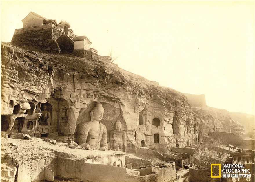 在日本旅华摄影师山本赞七郎1919年拍摄的云冈石窟旧影中,云冈村紧挨着石窟,有些洞窟已经被围在农民自家的院墙里。