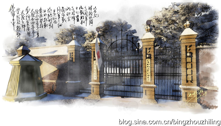 图1:沦陷期间的山西省立工业专科学校旧址南入口复原图 |