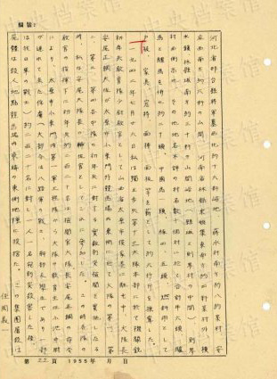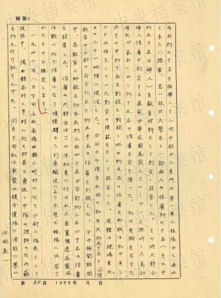 图2.住冈义一关于赛马场屠杀俘虏罪行的笔供 |