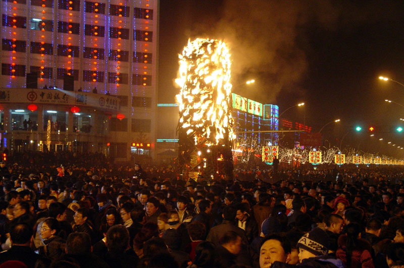 2011年正月十五期间,观看旺火的盛况 |