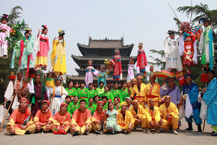 背棍艺人在太原市迎泽公园藏经楼合影(黯色男人拍摄) |