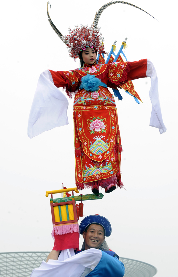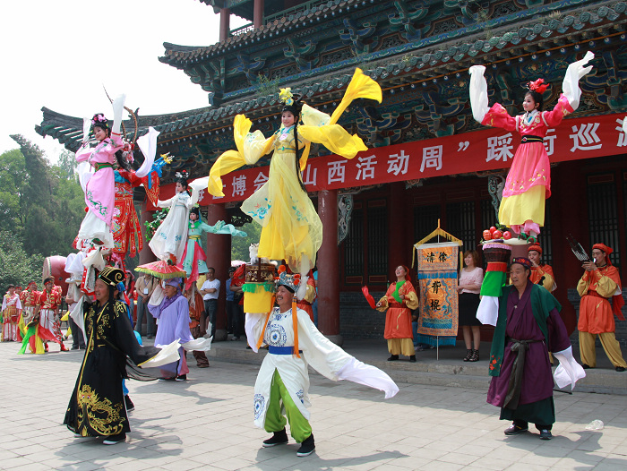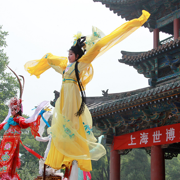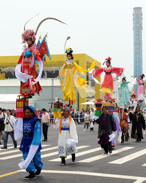 世博会山西周上的民间文艺节目巡游表演(以上两张照片由杨世尧拍摄)