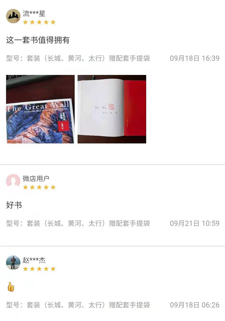 █ 2021年读者在微店、淘宝店购书页面对《长城·民族魂》的评价 |