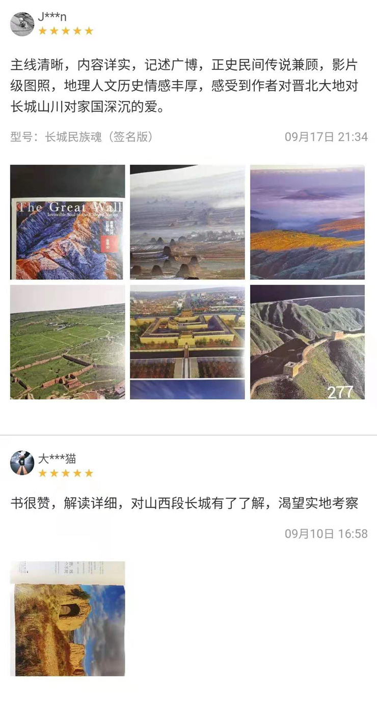 与张珉的第一部长城专著 《明朝那道墙——徒步探访山西外长城》一样 《长城·民族魂》 自正式上线销售以来 读者纷纷点赞,好评如潮 |