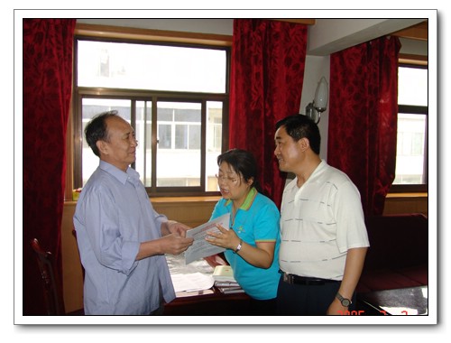 2005年,财专教工向退休在家父亲通报学校近期情况,图片来源于财专网站