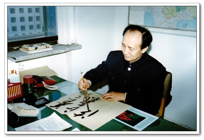父亲在练习书法,照片拍摄于1996年