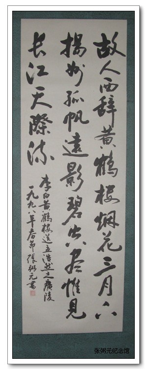 1996年3月,父亲在财专书法展览的的展板前留影