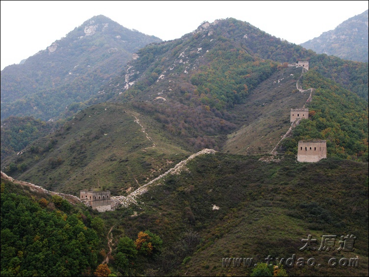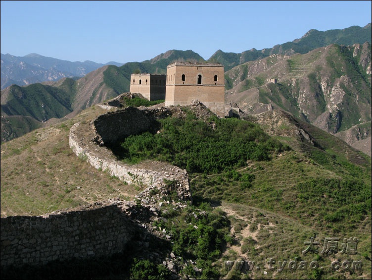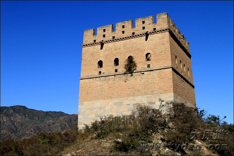 28、牛帮口 从竹帛口沿108国道东行十余公里,便是内长城上的牛帮口,三座保存基本完好的空心砖楼矗立在公路两侧,分别是茨字拾捌、贰拾、贰拾壹号台,此地原本还有茨字拾玖号台,1968年修建公路时拆毁。 《八路军挺进敌后》是著名战地记者沙飞拍摄的一张照片,巍峨的群山,庄重的敌楼,挺进敌后的骑兵,这一系列元素的组合使它成为经典的历史影象,其拍摄地点就在牛帮口。 |