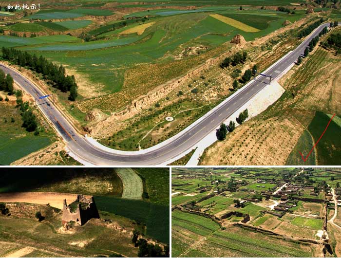平鲁长城,上图为穿越长城的109国道,下左为箭牌楼 |