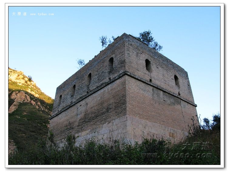 与此前所见的敌楼不同,受地形的限制,九号台平面呈长方形,长的一侧四个箭窗,窄的一侧两个箭窗