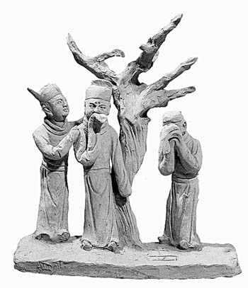 善孝养家。三座墓葬中,有孝子故事题材,尤以四号墓四周回廊下泥塑最为精美,砖灰色,高20厘米左右。人物线条简洁,比例适当,具有较高的艺术水平。为:舜帝大孝感动天、闵损单衣顺后母、郯子扮鹿求鹿乳、曹娥投江得父尸、郭巨埋儿天赐金、王祥卧冰求鲤鱼、刘殷哭堇孝感天、杨香救父手搏虎、赵孝宗舍己救弟、何子平葺屋兴悲、鲁义姑舍子救侄、董永卖身孝感天、鲍出贼营救老母、田真哭活紫荆树、丁兰思亲刻木像、孟宗哭竹生冬笋、杨乙行乞养双亲、韩伯俞泣笞伤老、崔孝芬奉婶如母、武子妻割股奉亲、袁觉拖笆谏父亲、曾参心痛感啮指、刘明达卖子养母、陆绩念母怀丹橘。