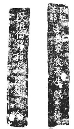 顶侧面刻有段祖善铭:孝养家食养生戏养神;右侧面刻有段祖伦铭:和家睦邻容人。