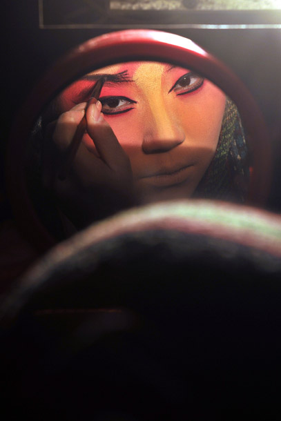 太原市实际晋剧院的演员在化妆