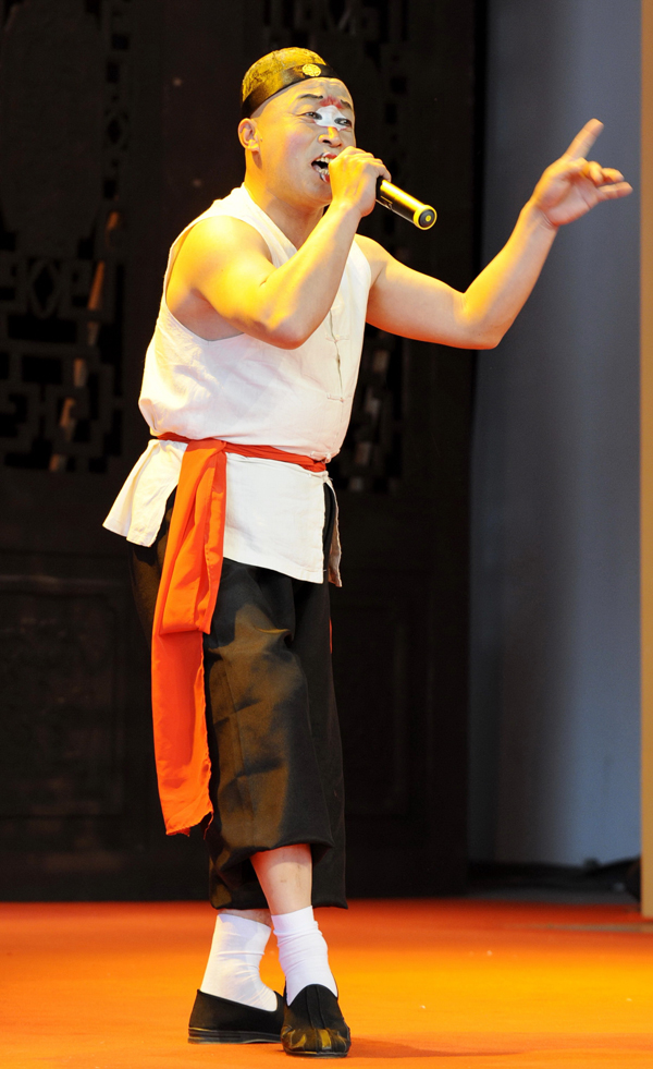 2010年5月21日,山西太谷秧歌艺术团的演员在宝钢大舞台展演区表演秧歌剧《卖高低》 |