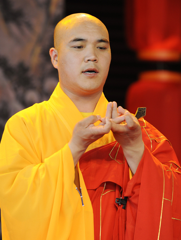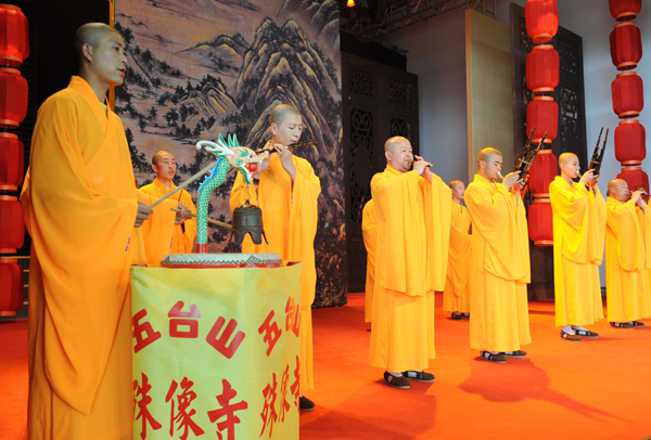 2010年5月21日,山西五台山的僧人在上海世博会山西活动周上表演佛教音乐