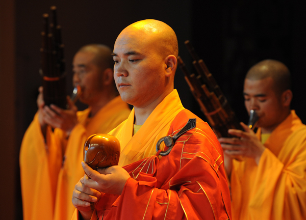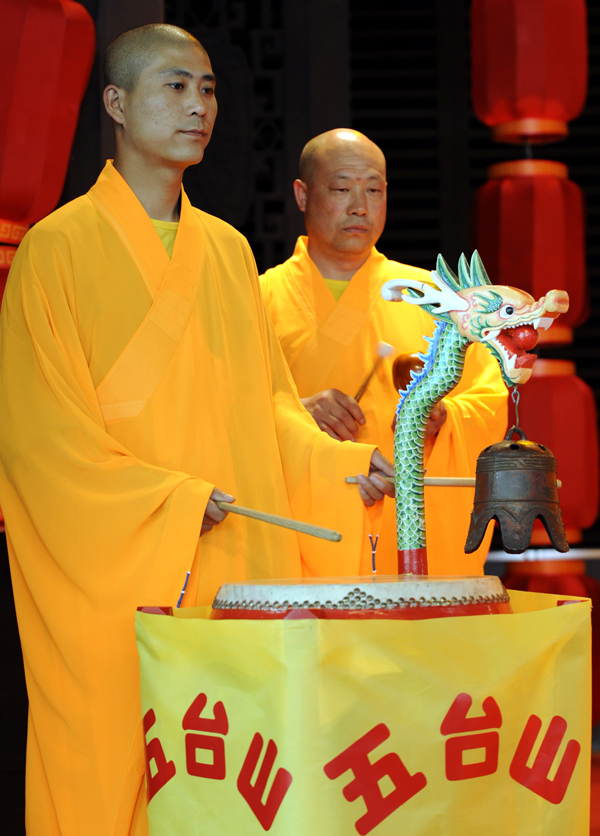 2010年5月21日,山西五台山的僧人在上海世博会山西活动周上表演佛教音乐 |