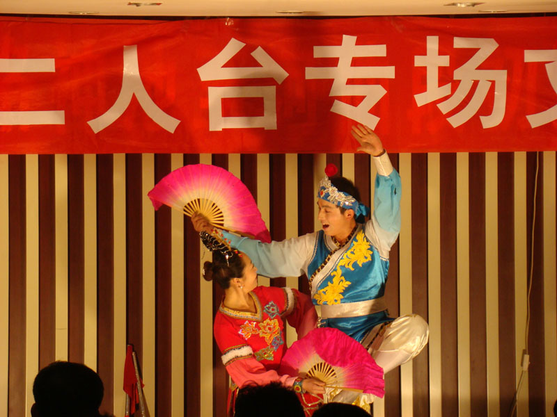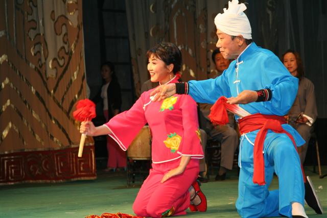 最早的二人台不叫二人台,叫“打坐腔”。那时河曲文化输入甚微,人们得不到文化享受,便在夏天的月光下,冬天的土炕上,在一支笛子、一把四胡的简单伴奏下,用当地的民歌——山曲,编唱些本地的奇人异事,把人们逗乐了逗笑了才算尽兴。再后来,河曲人干脆把它作为一种谋生手段,每到收获季节,三五结伙,腰掖粮袋,手提四胡、笛子到内蒙古的河套地区打地摊谋生演出,此时已不叫“打坐腔”而叫“打玩艺”。每到一村先调查谁家发生了什么大事小事,然后由两名男性,分扮一旦一丑,用河曲的山曲,把这个村发生的新鲜事即兴编成韵白(串话)和唱词(大都是溢美之词),再加些简单的丑角动作,把人逗得捧腹大笑。 一代代的艺人,以黄河儿女特有的灵气与辛勤的汗水把“打玩艺”这朵艺苑奇葩浇灌得艳丽夺目,到有记载的清同治八年 (1869年)就已搬上舞台,后来才叫“二人台”。 这就不难看出,从它的雏形到形成始终离不开娱乐性、通俗性与生活性这三性。 确也如此,从传统二人台的90多个剧目中不难看出,丑角的说白与韵白占有极其重要的位置,它是构成二人台喜剧效果的主要环节。连二人台的代表剧目《走西口》原也是一出喜剧,可见我们的祖先把音乐看得何等重要!他们更重要的是要在劳作之余得以愉心自乐之。 通俗性主要是指二人台的语言浅显易懂,故事情节生动感人。 在《打樱桃》一剧中,只写了一对恋人在打樱桃中互倾爱慕之情,故事简单但感人至深。爱得自然,爱得朴实,感情真挚、强烈。这些来自西北群众的口语,经过民间艺人的千锤百炼,就显得它朴素,而又像彩霞一样绚丽,像露珠一样晶莹。真是朴素而不单调,瑰丽又不雕砌,明朗而不浅露,含蓄而不晦涩。你说,这样的语言群众能不接受吗?它能没有生命力吗? 生活性,是二人台经久不衰的魅力所在。 二人台是在河曲民歌“山曲”的基础上发展演变成的一个小剧种,但终未发展成为固定的板腔体。如脍炙人口的二人台代表剧《走西口》,改编后,由喜剧变成一个“干打硬唱”的全剧贯穿一个“情”字的悲剧,运用近似河曲人那悲伤至极撕心裂肺的号啕大哭的哭板,把黑暗的旧社会逼得河曲人走西口的悲惨生活再现给西北乡亲,也把那生活在坡高沟深、无草无树、风吹塬上旷、土窑炊烟缈的黄土高原上那放羊的哥哥,挑苦菜的妹子那质朴的、赤裸裸的、刻骨铭心的爱与那生离死别悲痛欲绝的情感表现得淋漓尽致。 只有通俗易懂的语言,生动活泼的故事,委婉动听的唱段和滑稽与生活化的表演才能给观众留下深刻的印象与美好的回忆,才能久唱不衰。所以,娱乐性、通俗性、生活性就构成了二人台独特的艺术性。 ■ |
