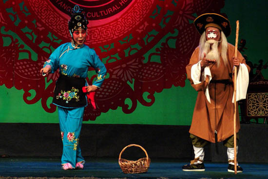 打个凤阳鼓。”念白中有:“口儿里唱的都是莲花落吆降呀咳。“又唱,“一喷一朵莲花,花开一朵美。”又《打花鼓》中唱,“转过这条臭胡同,咱们再唱莲花落。”这说明凤阳花鼓艺人流串到北方后也唱“莲花落”。这都对祁太秧歌的丰富、发展,起了很大的促进作用。从此,祁太秧歌曲调增多了,剧目也丰富了,并且增加了数板与念白和唱完有说,说完再唱的节目。当地艺人也编出不少剧本,如:《吵街》、《东六支赶会》等,还有另一种形式,丑角上场先说一段与剧情无关的杂说,如:《双唤妹》、《碾糕面》等。这种有歌有舞有说的三结合节目出现后,对祁太秧歌又是一个大的发展,而且孕育了戏曲化的胚胎。