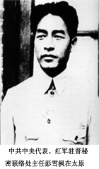 1936年5月25日,毛泽东致信阎锡山,向其提出联合中共,抗日反蒋利于共同战线的主张,并派出红军将领彭雪枫赴太原与阎锡山秘密洽谈。