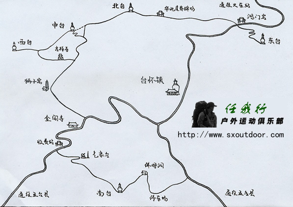 鸿门岩→东台→鸿门岩→北台→澡浴池→中台→西台→吉祥寺→狮子窝→金阁寺→山门→气象站→南台→佛母洞→佛母洞停车场