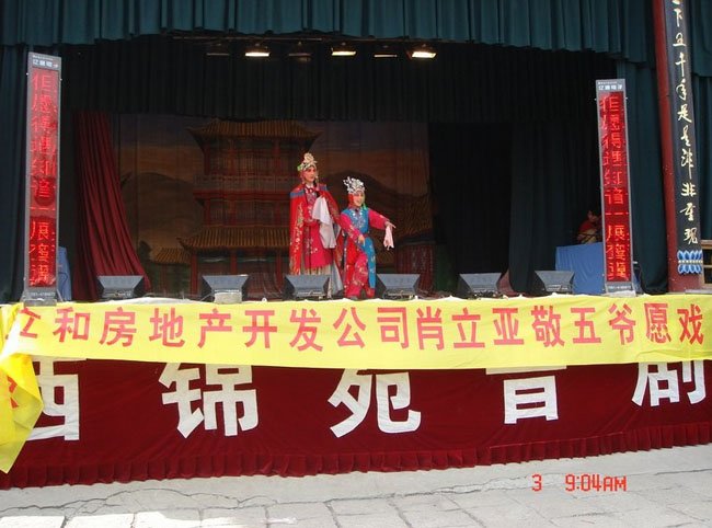 古戏台在五龙王殿对面,是专为给五龙王唱戏而设置的。传说佛、菩萨是超尘脱世,一心去情真如之境,而五龙王却对尘世生活感兴趣,很爱看戏。过去每年六月大会,都要大开殿门,让五爷居高居中观赏。通过唱戏敬神,求得五爷欢心,恩赐及时雨,给百姓降丰年。如今这些只是人们传谈的趣话了,古戏台成了五台山群众文化娱乐的场所。 |