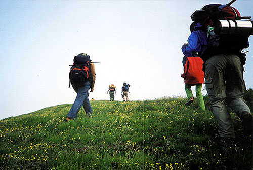 在徒步大朝台的队伍中,除了佛教信徒外,还有一群神采飞扬的年青人,他们就是以“挑战极限,超越自我”为目标的户外运动爱好者们。2003年6月,太原任我行户外运动俱乐部曾组织了“徒步大朝台”,我有幸参与其中。