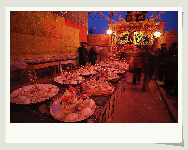 每年农历二月十九,山西省吕梁市岚县旧城内即岚城北街有一传统的古庙会、即贡会。其主要活动形式就是摆贡,用面塑这种形式体现出民间人民追求真、善、美的一种礼祭祀活动。