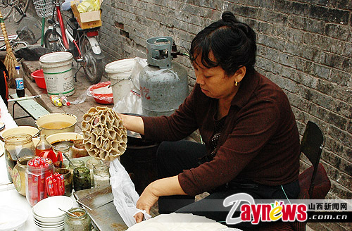 美食习俗多来源于地方物产与历史传承。山西北部高寒地区,盛产莜麦(也称燕麦、玉麦),从民谣“雁北三件宝,莜麦、山药、大皮袄”就可见一二。过去艰苦的自然条件锻炼了山区人们杂粮细做的本领,新媳妇在婆家第一次上锅,要先在莜面上露一手;而新女婿春节登门也要吃上十种花样的莜面饭。莜面栲栳栳,就是这种莜面饭的一种,因形似“蜂窝”,所以当地老百姓也称其为“莜面窝窝”。其制法关键有三:一是沸水和面,二是快速搭卷,三是掌握火候。