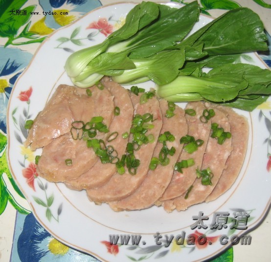 晋菜中还有一道荷叶粉蒸肉,相传始于三国。《晋食纵横丛书·名食掌故》等记载,民间传说关羽马前步将周仓,疾步如飞。关羽闻得其手脚长毛,号“飞毛”,为探虚实,对周仓说,欲能同床共眠。周仓不知是计,上床后就呼呼大睡,而手脚之毛扎得关羽一夜难寝。次日周仓得知,情急之下将手脚上的毛剃得精光。周仓此后开始掉队,还常常来不及吃饭,一次用荷叶包了蒸肉边走边吃,味道变得格外香美可口。晋人尚义,加以夏秋之际,晋祠荷叶连天碧,遂创制成荷叶粉蒸肉,成为并州古城夏令美食。柏原在《谈花说木》一书中感叹其色之艳,味之珍,赋有“曲院莲叶碧清新,蒸肉犹留荷花香”。