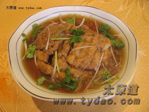 酱梅肉在太原全晋会馆改良吃法,配以荷叶饼、酥方、葱丝、黄瓜丝等,深得顾客称赞,成为一道畅销名菜。笔者曾陪著名美食家李耀云大师品此菜,兴所致,借白朴《沁园春》略改赋云“对诗书满架,子孙可教,琴樽一室,亲友相欢。酱梅肉前,得味慰馋,鱼鸟溪山任往还。岂忘否,访晋商故里,食典相传。”的确,名菜多典故,典故多言礼。如此“晋式三蒸”传承至今、慰馋于人的,还有着一份味中之味、养心益神的东西了,菜式虽千变万化,此为鲜活灵魂。 |