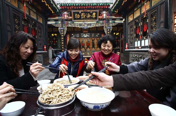 2011年2月15日,山西平遥古城内的程家老院一家人在乐享传统山西面食 |