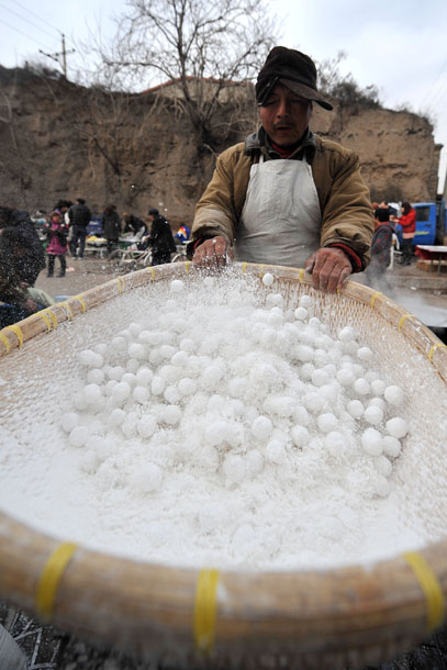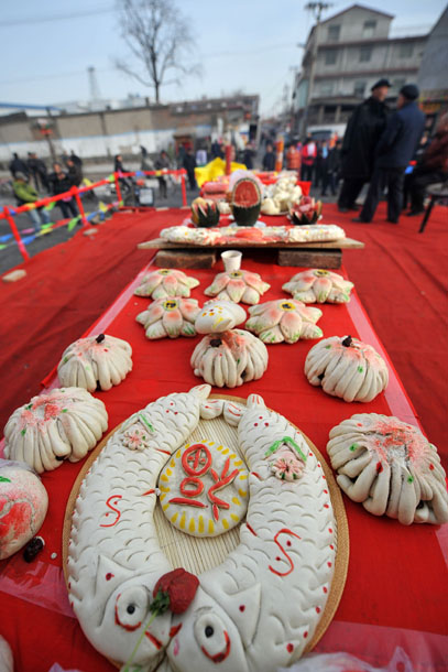 2012年2月23日,在太原市晋源区一年一度的龙天庙会上,游客在欣赏晋阳花馍