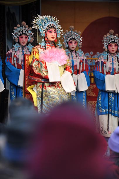 山西嫦娥梅花晋剧团的演员在龙天庙会上表演晋剧