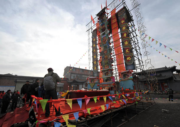 龙天庙会上的南街村架火吸引了许多游客的目光 |