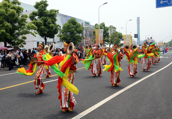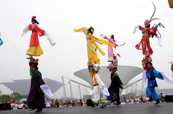 世博会山西周上的民间文艺节目巡游表演(以上两张照片由杨世尧拍摄)