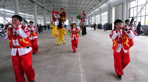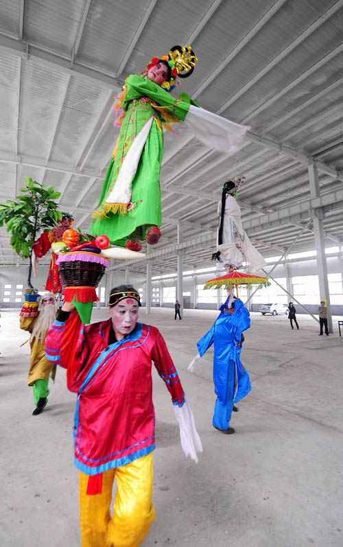 山西省清徐县的徐沟背棍表演团正在紧锣密鼓地排练(新华社范敏达摄)