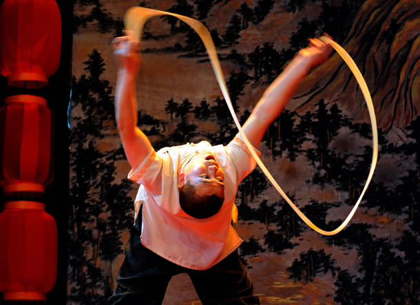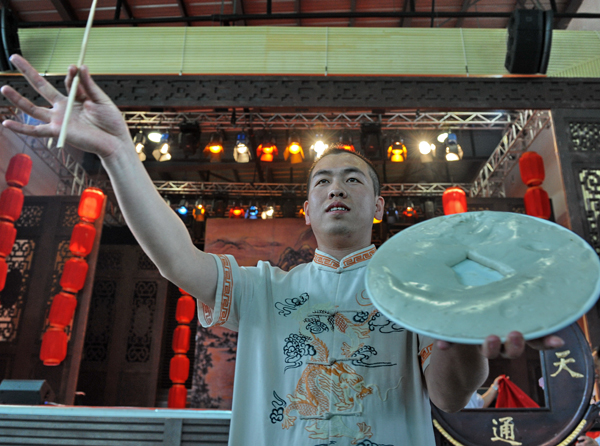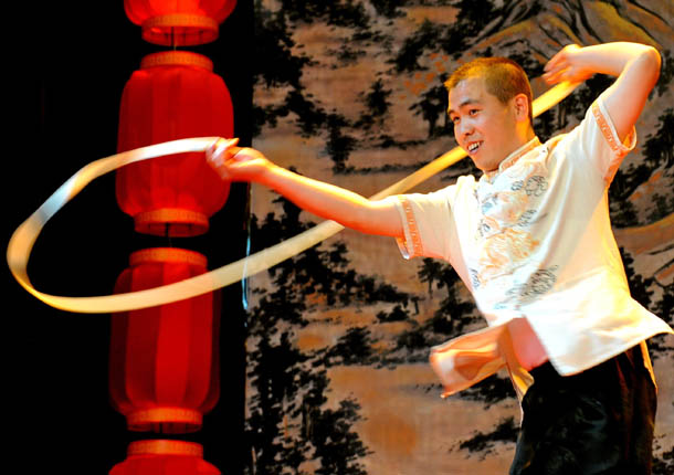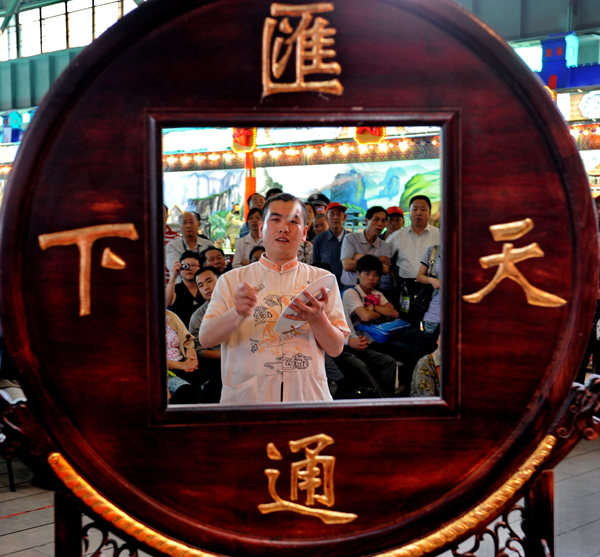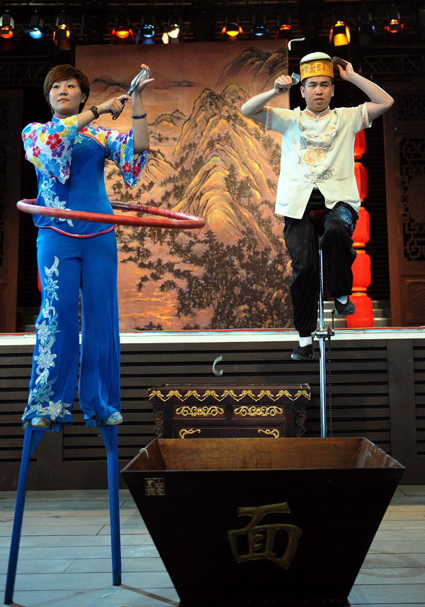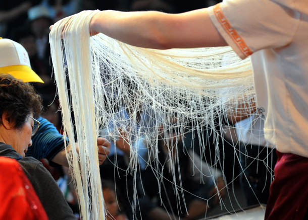 2010年5月22日,山西会馆的面点师王张龙在山西活动周期间为游客表演抻面特技