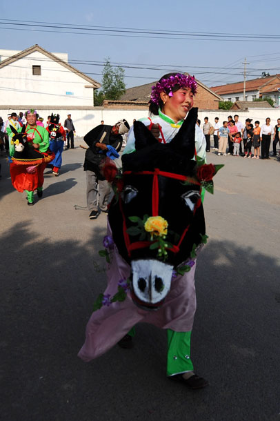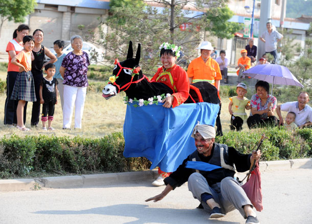 2010年6月18日,来自沁县故县镇的民间艺人在表演“跑驴”