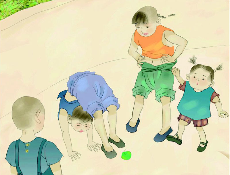 02:跳绳 05:滚铁环 08:抓石子 11:摸瞎瞎 14:翻鞋鞋 17:玩弹弓 20:摔跤 23:打腿 26:吹肥皂泡 29:木头人 32:穿杨树叶与“斗草” 35:猜谜语 38:骑竹马 41:捞金鱼与转板凳 44:憋“茅坑” 47:拔河 50:翻羊骨节 53:养麻雀 56:找“替死鬼” 59:玩弓箭 62:抖空竹 65:丢手绢 68:击掌与掰手指 |