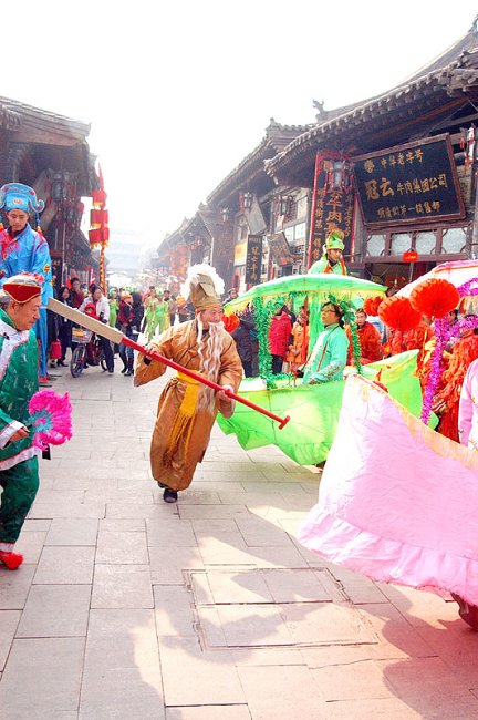 “闹红火”的活动,据传秦、汉时已开始,到唐代有所发展,到宋时风靡一时。历史上,这种“闹红火”活动据说有七十一种节目。山西境内,流传于各地的民间社火表演、跑法,步路有许多相似之处,实则技艺风格各有千秋,各具特色。太原市区流传着这样的民谣:“城南的狮子城西的龙,城内的高跷技艺精”。柳巷街道组织的高跷队,鼓点快,变化多,具有浓厚的冀中风格。而庙前街道组织的高跷队,则舞步稳健,动作舒展,是典型的太原传统步法。在正月十五闹红火的人流中,自然有“徐沟的铁棍爱煞人”了。
